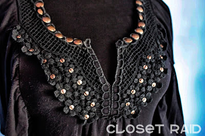 Embellished flutter sleeve black dress